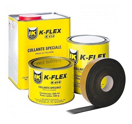 Клей K–FLEX K414 представляет собой однокомпонентный контактный клей на основе полихлоропренового каучука и предназначен для склейки изделий K–FLEX и покрытий AL CLAD, IC CLAD SR и IC CLAD BK.