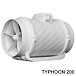 Вентиляторы TYPHOON имеют съемный центральный блок с двигателем, крыльчаткой и клеммной коробкой, которые крепятся к патрубкам хомутами. Данная конструкция упрощает обслуживание. В моделях TYPHOON 100-200 хомуты пластиковые, в TYPHOON 250, 315 - металлические. Корпус вентилятора и рабочее колесо из пластика. Класс защиты IP 44 позволяет использовать вентиляторы во влажных помещениях.