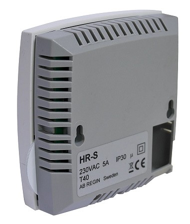HR-S представляет собой комнатный контроллер влажности и/или сухости для настенного монтажа со встроенным синтетическим чувствительным элементом. Синтетический элемент расширяется при увеличении уровня влажности в помещении и сужается при ее понижении. Эти изменения передаются на микро выключатель. Контрольная точка обеспечивает положение микро выключателя по отношению к чувствительному элементу. Контрольная точка может быть установлена между 20…90% относительной влажности.